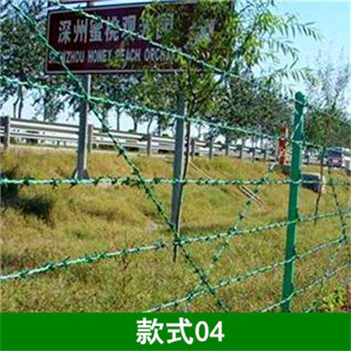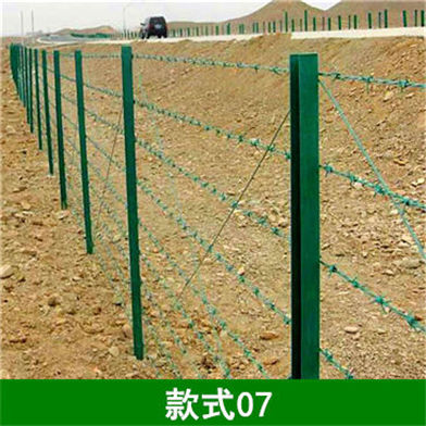 3、刺铁丝隔离栅采用镀锌涂塑处理,镀锌量魏90g/㎡,涂塑层厚度不小于0.15mm。