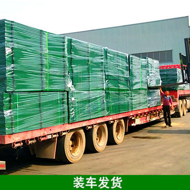 3.高速公路护栏网的所有金属部件,均采用绿色涂塑处理。立柱、斜撑、紧固件、连接件的涂塑层厚度应不低于0.38mm,高速公路护栏网钢丝的涂塑层厚度应不低于0.30mm。