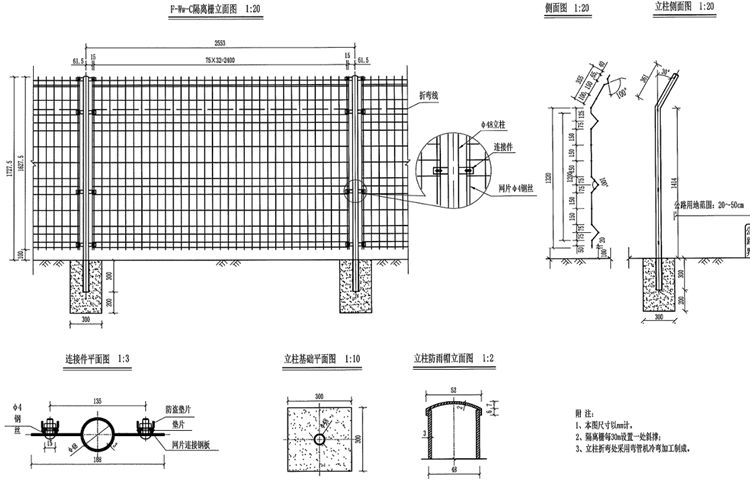 2、F-Ww-C焊接网隔离栅用Φ4mm低碳钢丝制造,其性能需符合国家现行相关规范、规定;