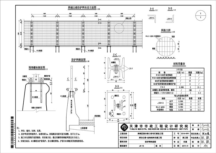 二、跨越公路防护网材料用量