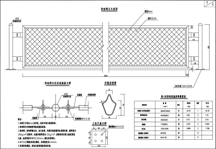 1.本图高速公路防眩网尺寸均以mm为单位,适用于特大桥梁防眩。