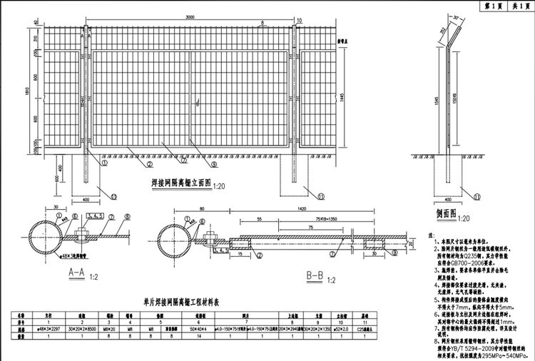 2、焊接网隔离栅除网片钢丝为一般用途低碳钢丝外,所有钢材均为Q235钢,其力学性能应符合GB700-2006要求。