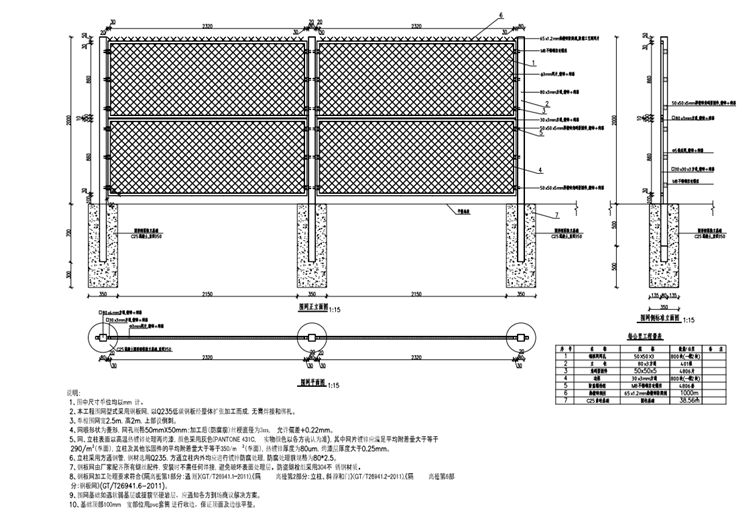 3、单樘围网宽2.5m,高2m,上部设倒刺。