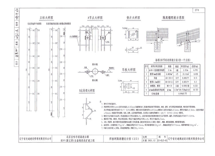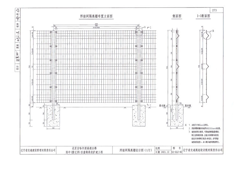 北京至哈尔滨高速公路焊接网隔离栅设计要求: