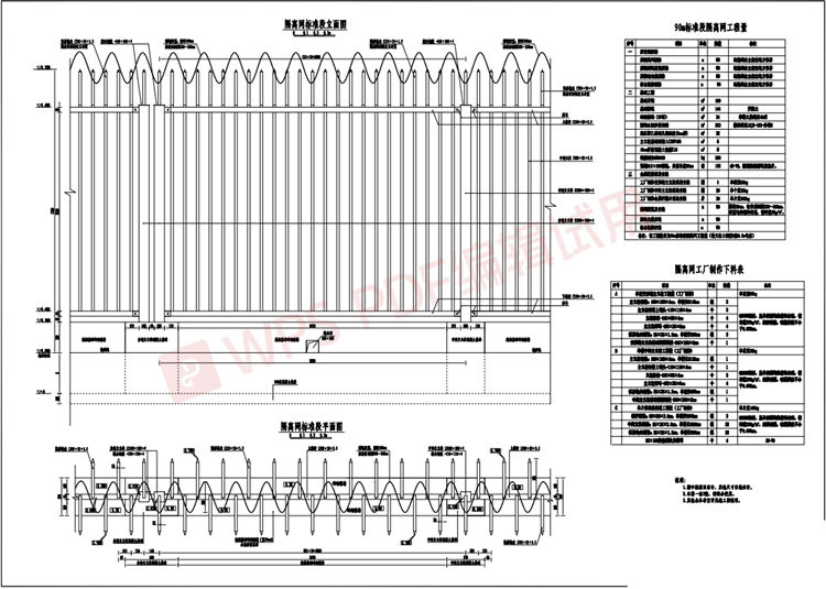 9、主立柱、栏栅网片及刺绳均为工厂制作,现场安装。