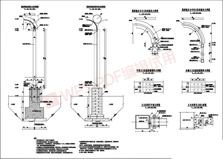 2、砖砌矮墙与主立柱基础间设置结构缝,缝宽为20mm,缝内填高压聚乙烯闭孔泡沫板;