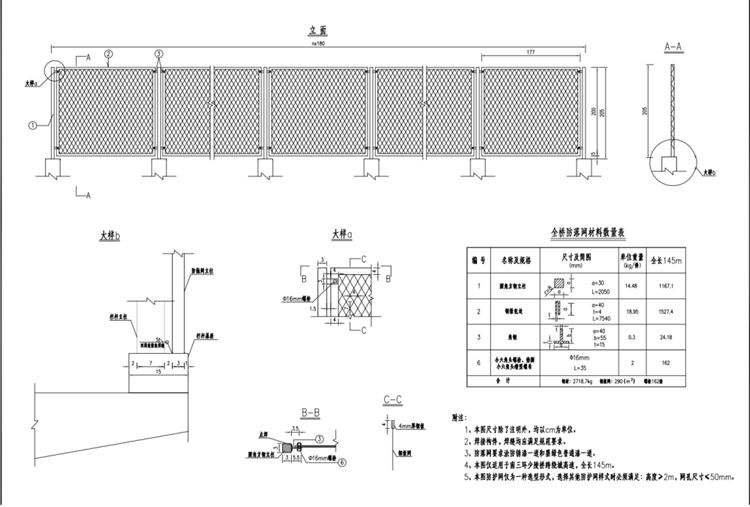 6、本图防护网仅为一种选型形式,选择其他防护网样式时必须满足:高度>2m,网孔尺寸≤50mm。