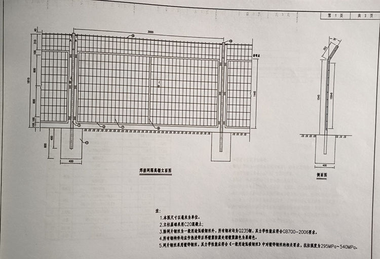 3.除网片钢丝为一般用途低碳钢丝外,所有钢材均为Q235钢,其力学性能应符合GB700-2006要求。