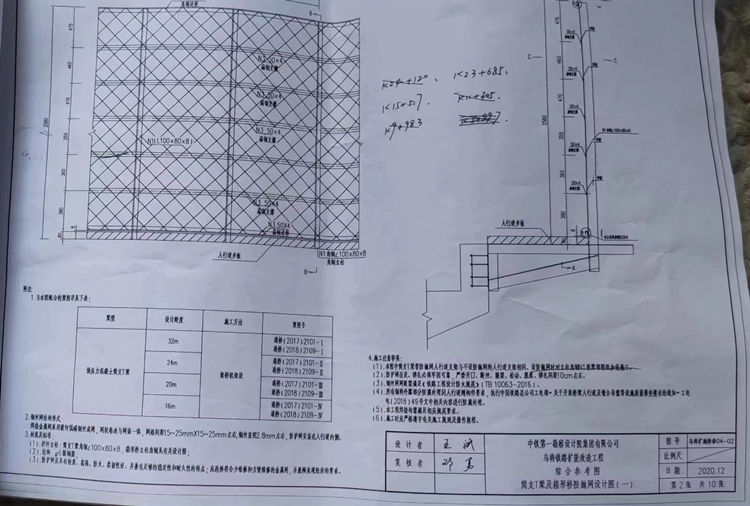 1、本图中筒支T梁带防抛网人行道支架与不设防抛网的人行道支架相同,设防抛网时对立柱角钢N1按梁部图纸加高施工。
