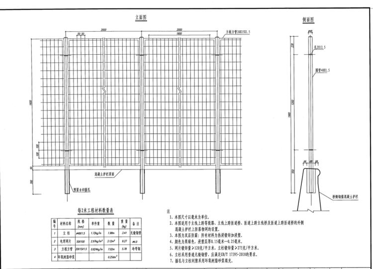 2、本图适用于主线上跨等级路、主线上跨匝道桥、匝道上跨主线桥及匝道上跨匝道桥的外侧混凝土护栏上防落物网的设置。