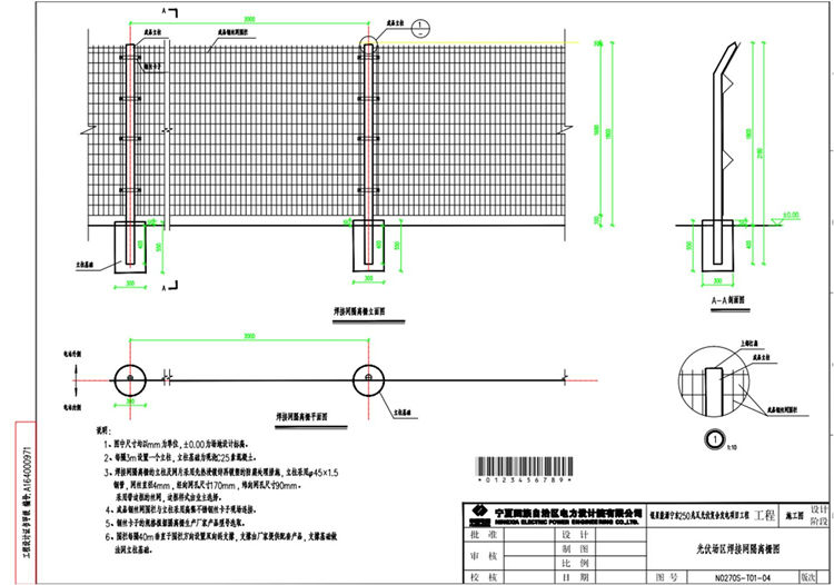 1、图中光伏场区焊接网隔离栅尺寸均以mm为单位, ±0.00为场地设计标高。