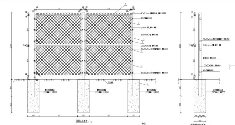 1.图中钢板网隔离栅尺寸单位均以mm计。