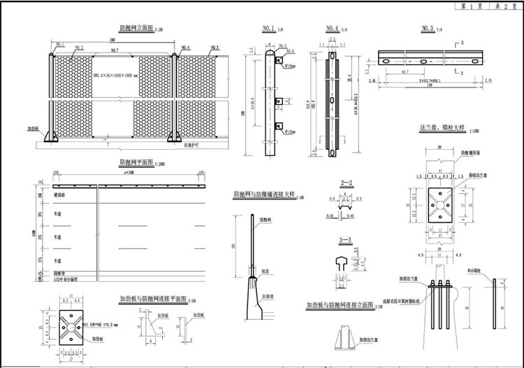 6、钢板网防护网基础加劲法兰盘与立柱在工厂里制作为成品,现场采用螺母安装。