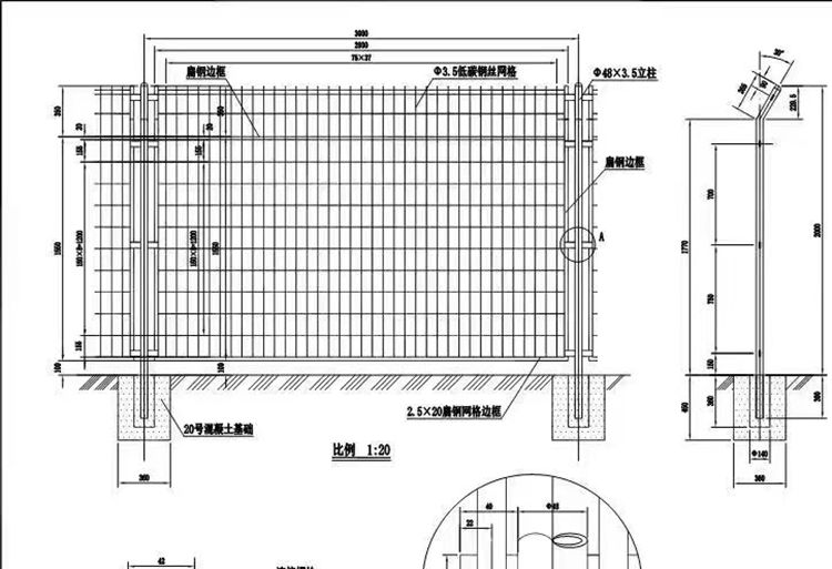 3、焊接网隔离栅的规格尺寸应符合规范要求。焊接网隔离栅设施统一采用钢管立柱,技术条件应符合《碳素钢结构》(GB/T700-2006)的规定,焊接网隔离栅颜色采用墨绿色。