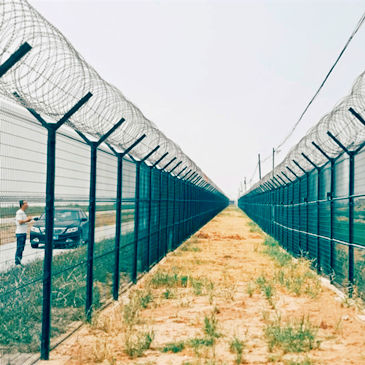 8. 防攀爬金属隔离网顶部设一道蛇腹型刀刺网,刀刺网材质为304不锈钢,圈径不小于600mm,每米长度不少于7圈,圈距排列均匀,刀片形式为BTO-22(芯线直径为2.5±0.1mm,刀片厚0.5±0.05mm,刀片长22±1mm,刀片宽15±1mm,刀片间距为36±1mm)。