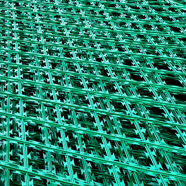 2、防攀爬不锈钢隔离网网边30mX50mm不锈钢方管(壁厚3mm),网片丝径斜交叉形成菱形网格,菱形网格对角线50*100mm、丝径2.5mm,丝径外包刀片,刀片长度22m,刀片宽度16mm,内芯直径大于(等于)2.5mm,每个菱形网格中每根丝径上含1至2个刀片。以上所有材质均为201不锈钢。