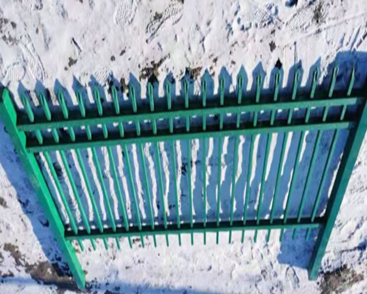 1、镀锌喷塑护栏构架材质:锌钢方管,表面均匀喷涂0.1mm厚绿色防爆裂静电粉末。