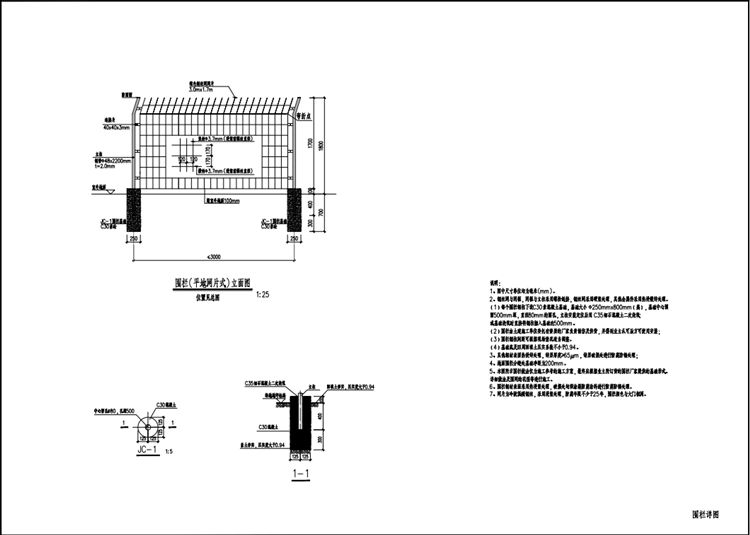 6.钢丝网围栏基础底及四周回填土压实系数不小于0.94。