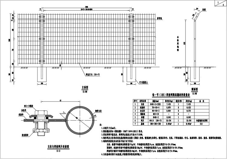 6.喷塑绿色围栏网立柱基础采用C15砼浇筑,并根据实际情况放样施工。