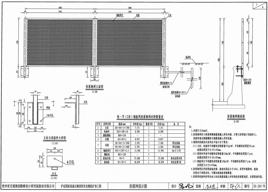 4.防落物网应作防雷接地处理,接地电阻应小于10Ω,若受环境影响,接地电阻达不到要求时,可增加接地体角钢数量。