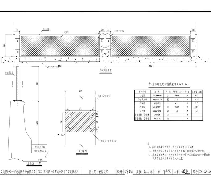 2、防眩网立柱与混凝土护栏同采用M10X110膨胀螺栓进行连接。