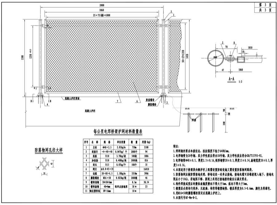 4.本图适用于桥梁段内侧护栏上即需设置防眩设施又需设置防落物网路段。