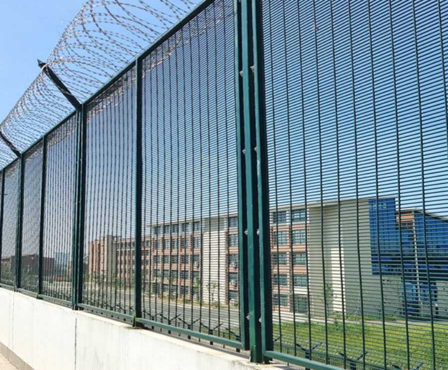 立柱:立柱材质为Q235B冷弯型钢,间距不应大于2.50m,立柱壁厚不应小于3mm,立柱边长80nm。网片:2300mm(长)X3200mm (高),中间无接缝,为一个整体。钢丝焊接网材质为CDW550级冷拔低碳钢丝,网孔间距横向不应大于100mm,坚向宜为12.5mm±1.0mm,钢丝直径不应小于 4mm,网片焊接抗拉力不应小于2kN。网片边框:边框材质为Q235B冷弯方钢,边长不应小于40mm,壁厚3.0mm。立柱、边框与网片宜采用抱箍、防拆卸螺栓、钢板压条等构件组装连接法兰盘:220mmX220mmX15mm (厚),钢板。
