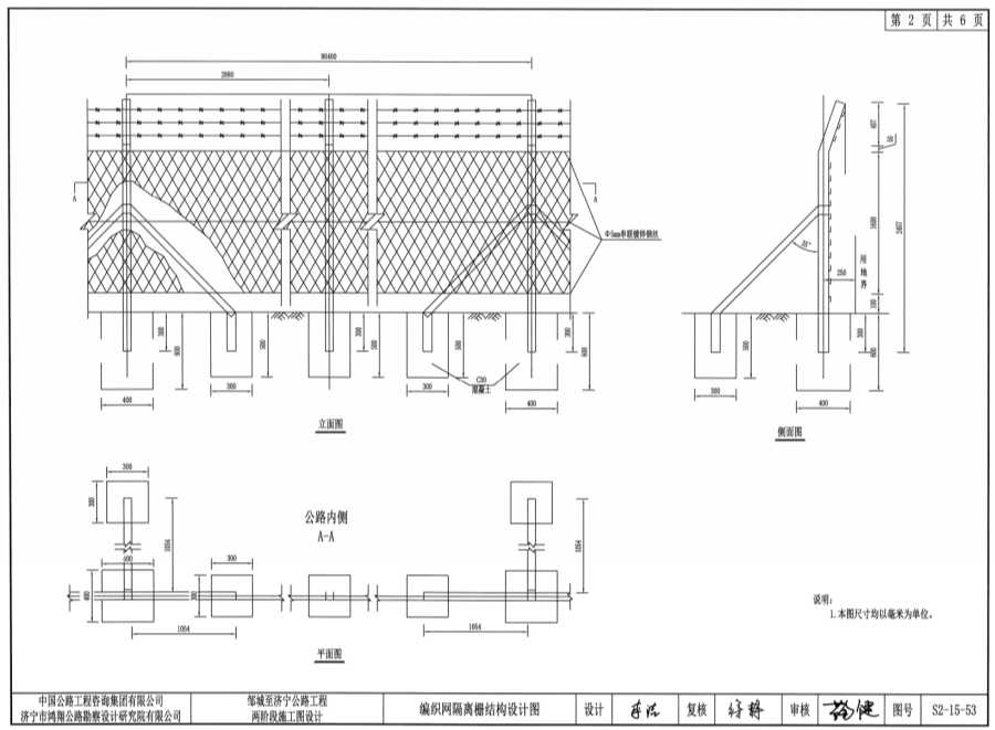 2.隔离栅沿公路用地界布置,立柱在用地界内侧25cm处。