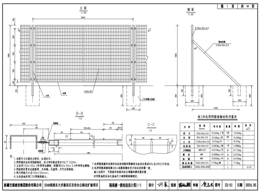 8.电焊网隔离栅每隔48m或隔离栅改变方向处设斜撑一道,施工过程中,可根据具体情况适当调整斜撑设置位置,对受限地段应加大基础尺寸确保隔离栅稳定。