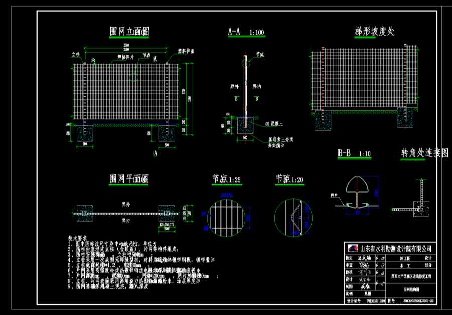 9、围网基础采用C30混凝土现浇,埋入深度250。