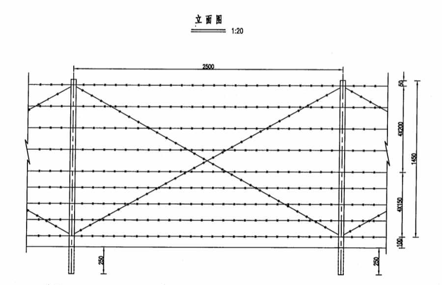 1、本图为刺钢丝网隔离栅,尺寸均以毫米计。